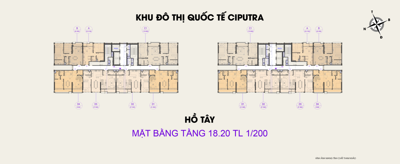 ◉ Diện tích: 53.3 m² – 81.5 m² – 107.4 m² – 114.4 m² – 117.5 m² – 135.2m²