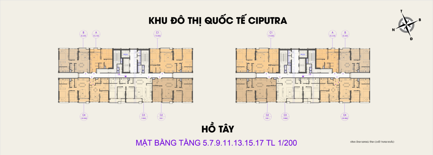 ◉ Diện tích: 53.3 m² – 81.5 m² – 107.4 m² – 114.4 m² – 117.5 m² – 135.2m²